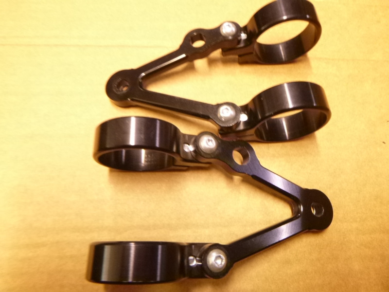 | Egyedi első lámpa felfogató Állítható szélességgel, fordított teleszkópra, max:53 mmig, előre: kb: 20 cm, 3 funkciós, E betűs dupla lámpával, foncsor átm: 9 cm Használt, szép állapotban! 75 000,-Ft |