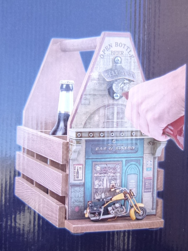 | Szerszámos láda alakú italtartó fából, hordozható 33,5x34,2x19,5 cm Új!