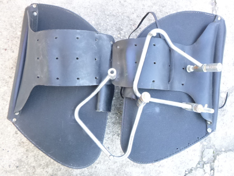 | Szegecses, bőr nyeregtáska pár kb: 40x30x17 cm Használt, alul a kipufogó kidörzsölte! 27 500,-Ft |